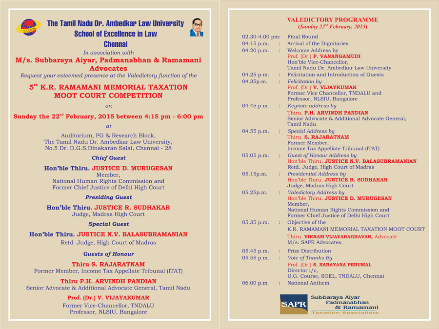 5th K.R.Ramamani Memorial Taxation Moot Court Competition Results